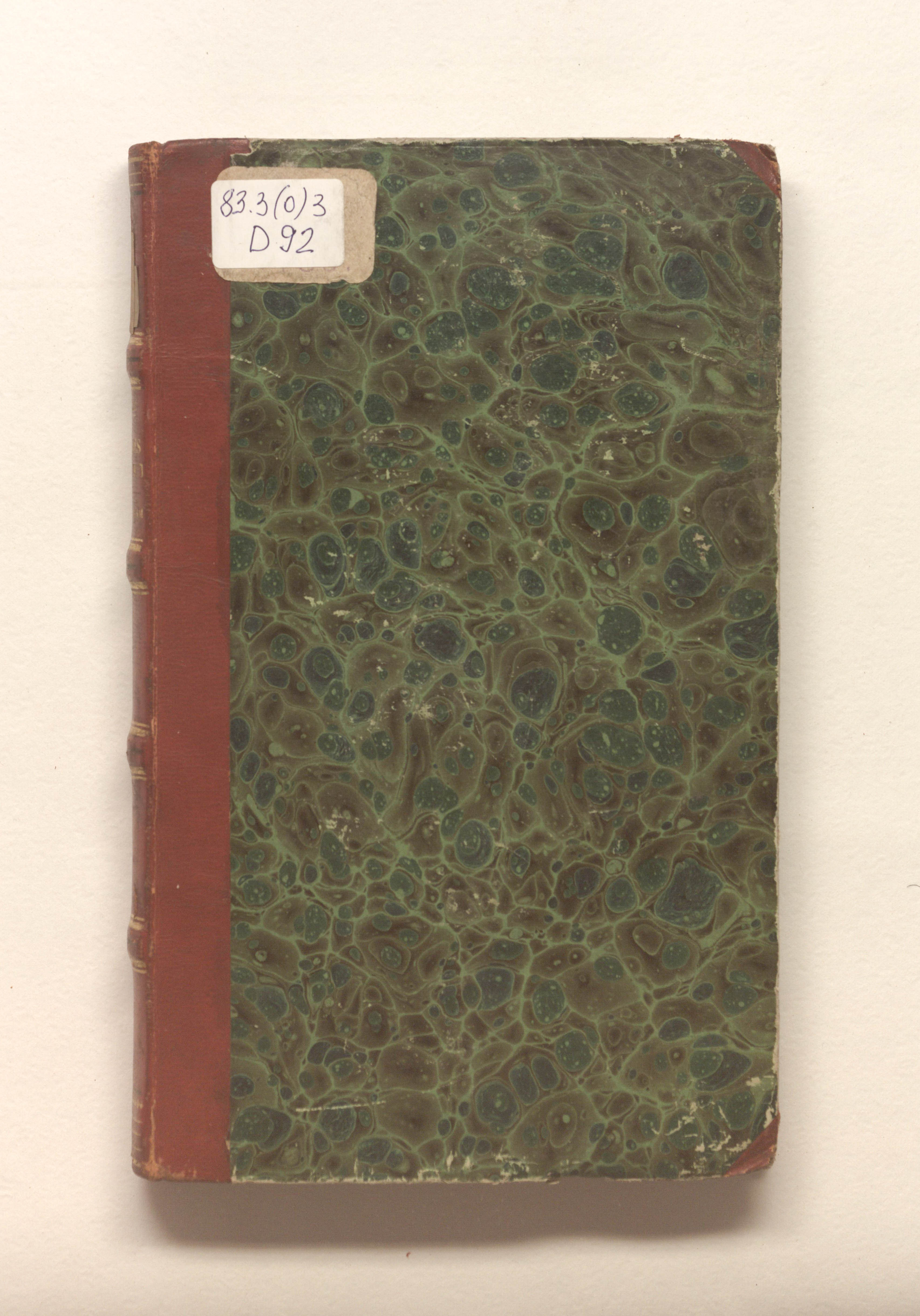 Книга в полукожаном владельческом переплете. Крышки переплета обтянуты бумагой с рисунком «под мрамор». Бумага верже.
