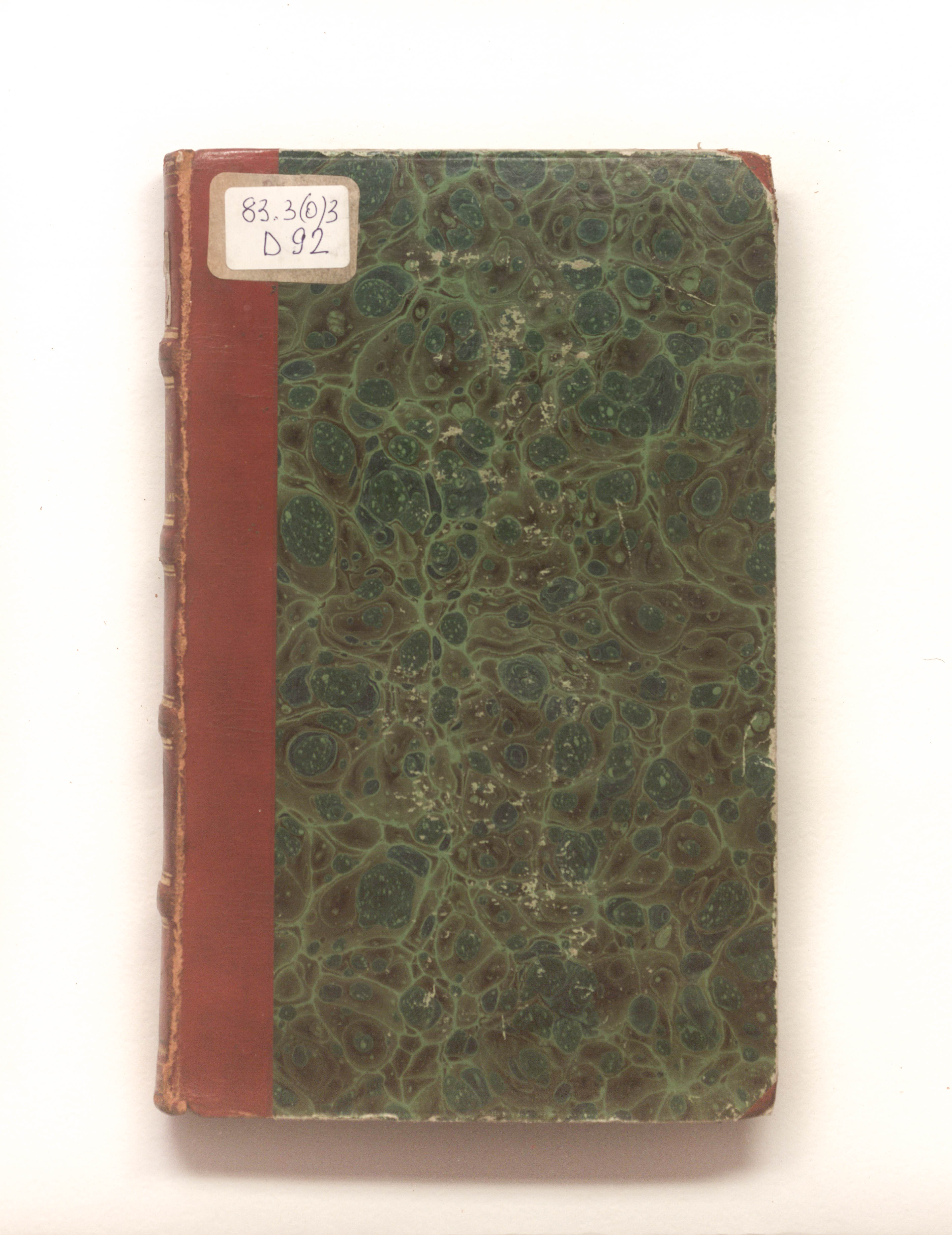 Книга в полукожаном владельческом переплете. Крышки переплета обтянуты бумагой с рисунком «под мрамор». Бумага верже.