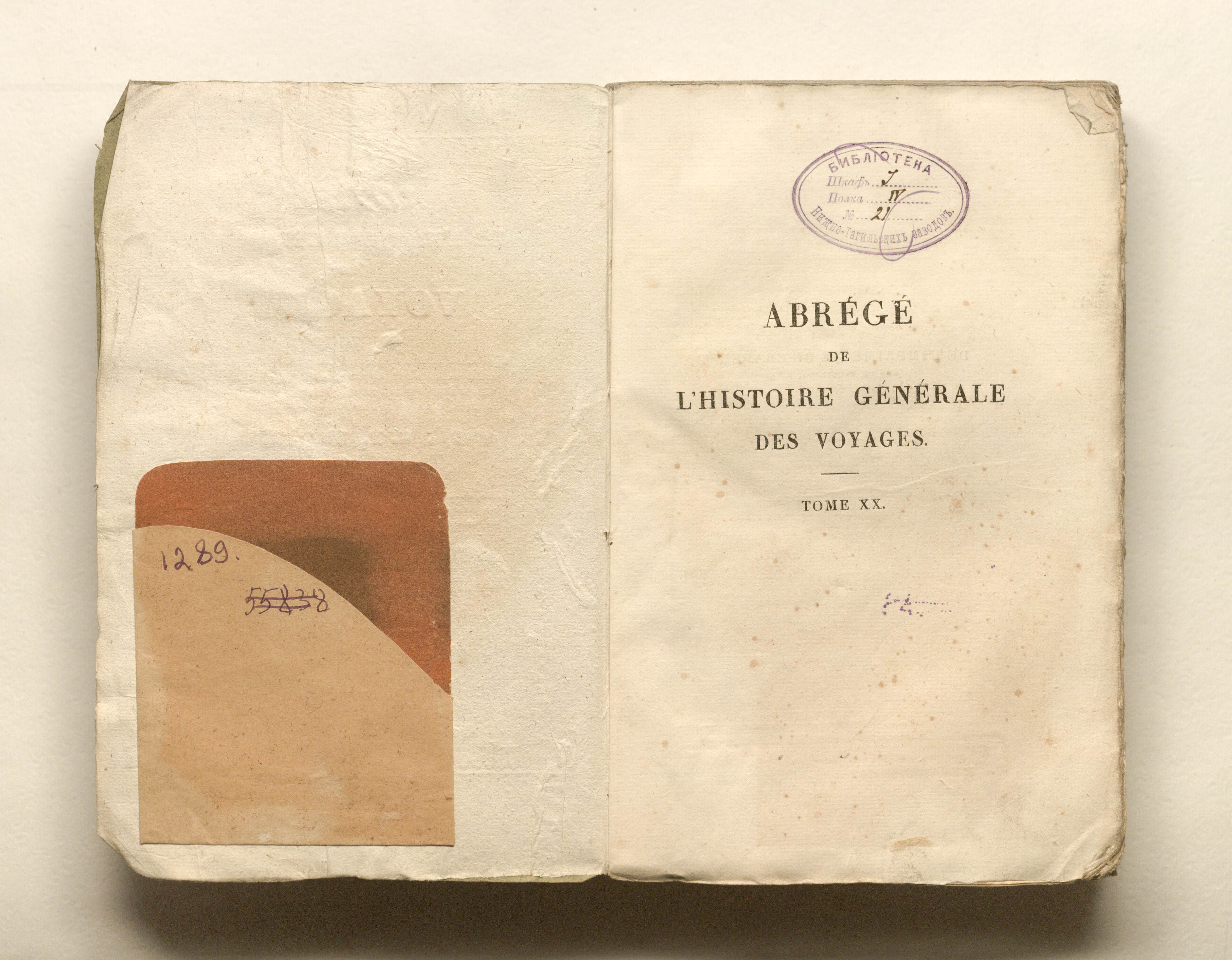 "Библиотека Нижне-Тагильских заводов" Шкаф J. Полка IV. №21"» (авантитул);