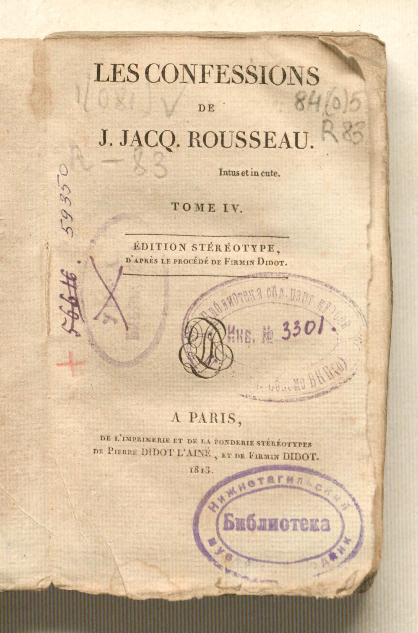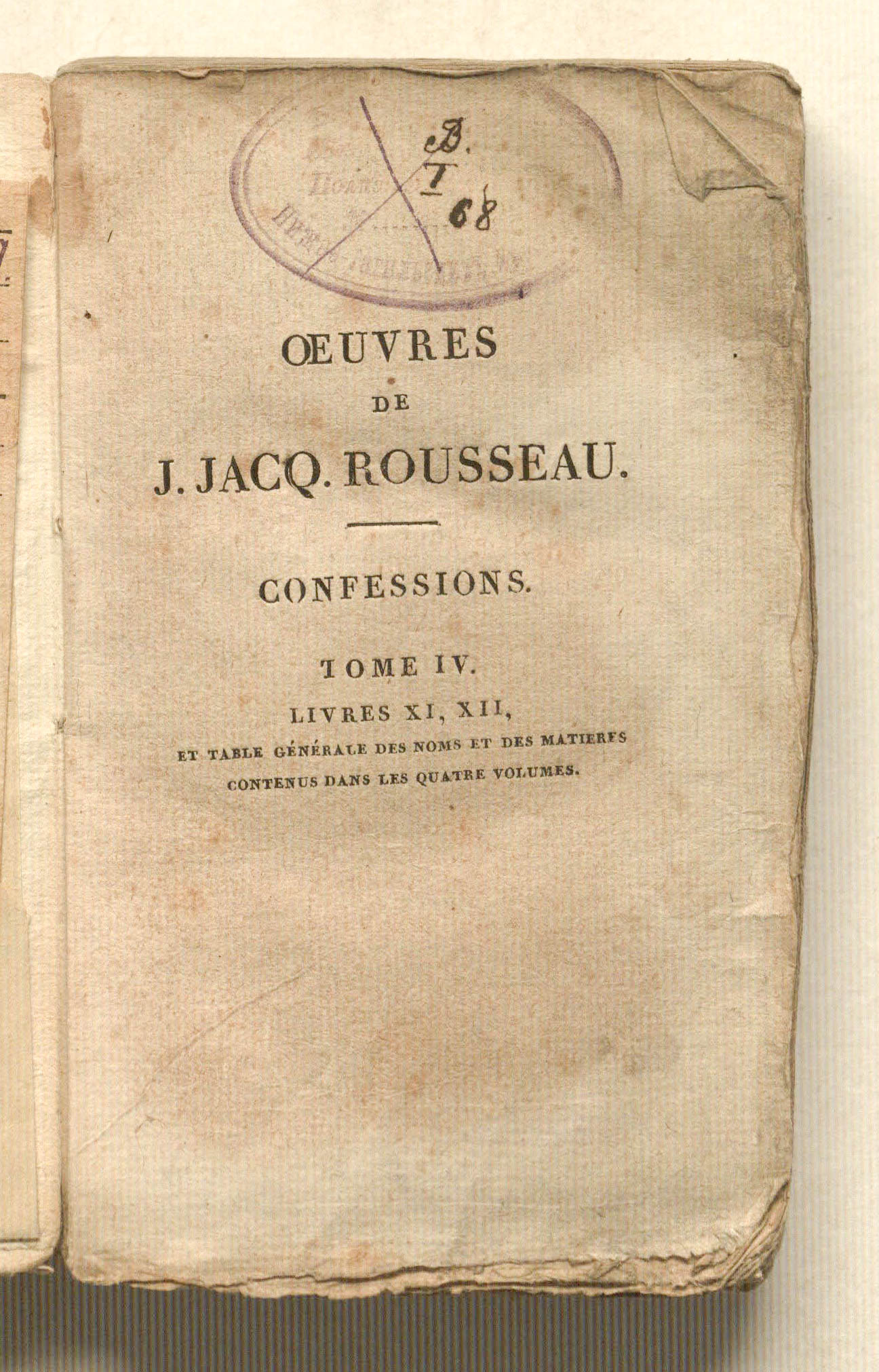 Oeuvres de J. J. Rousseau. Les Confessions. Tome IV. Edition stereotype. – 4 t. – T. 4. - Paris : P. Didot l'aine; F. Didot, 1813. - 244 p.; 9x15 cm.
