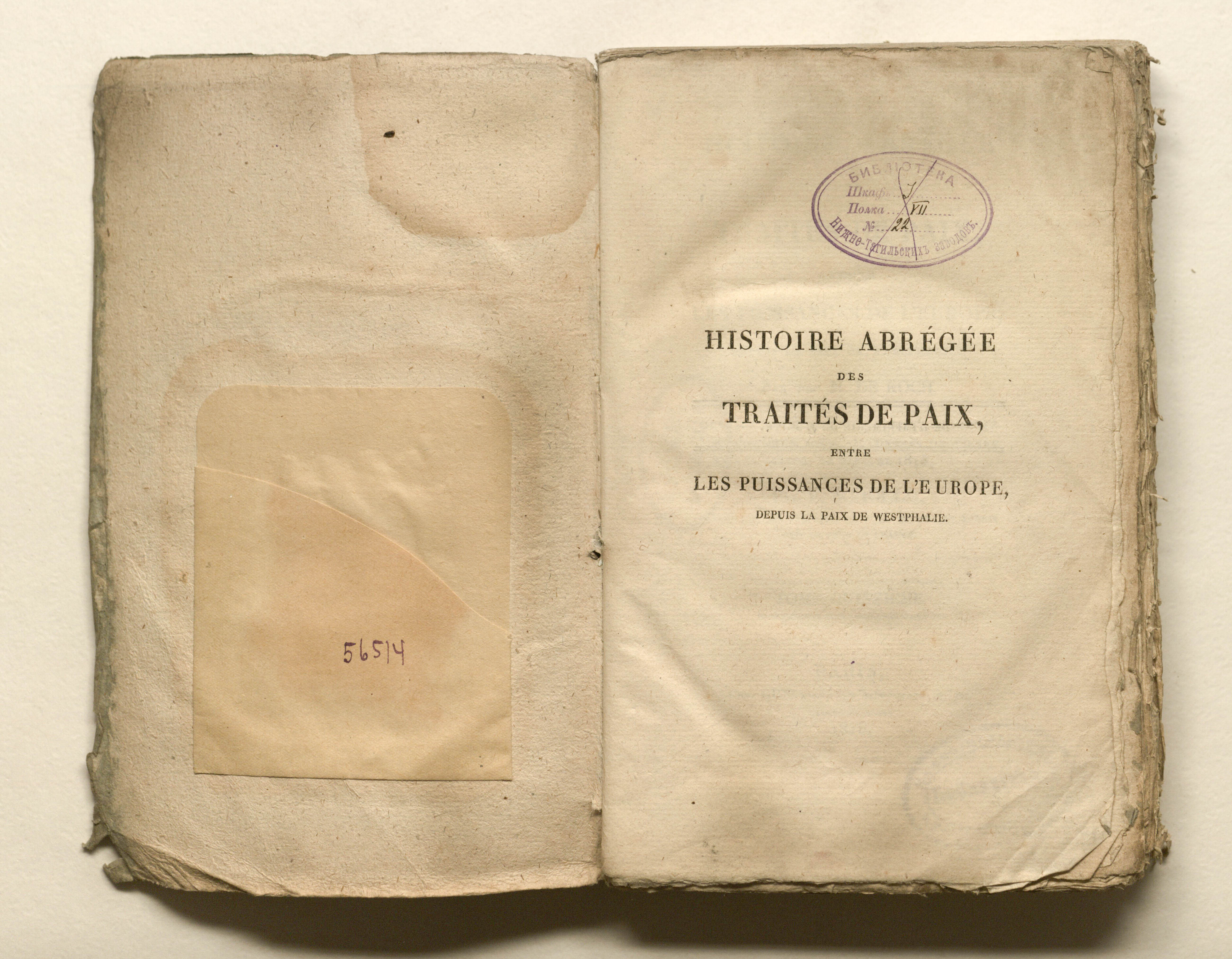 "Библиотека Нижне-Тагильских заводов" Шкаф J. Полка VII. №22"» (авантитул);