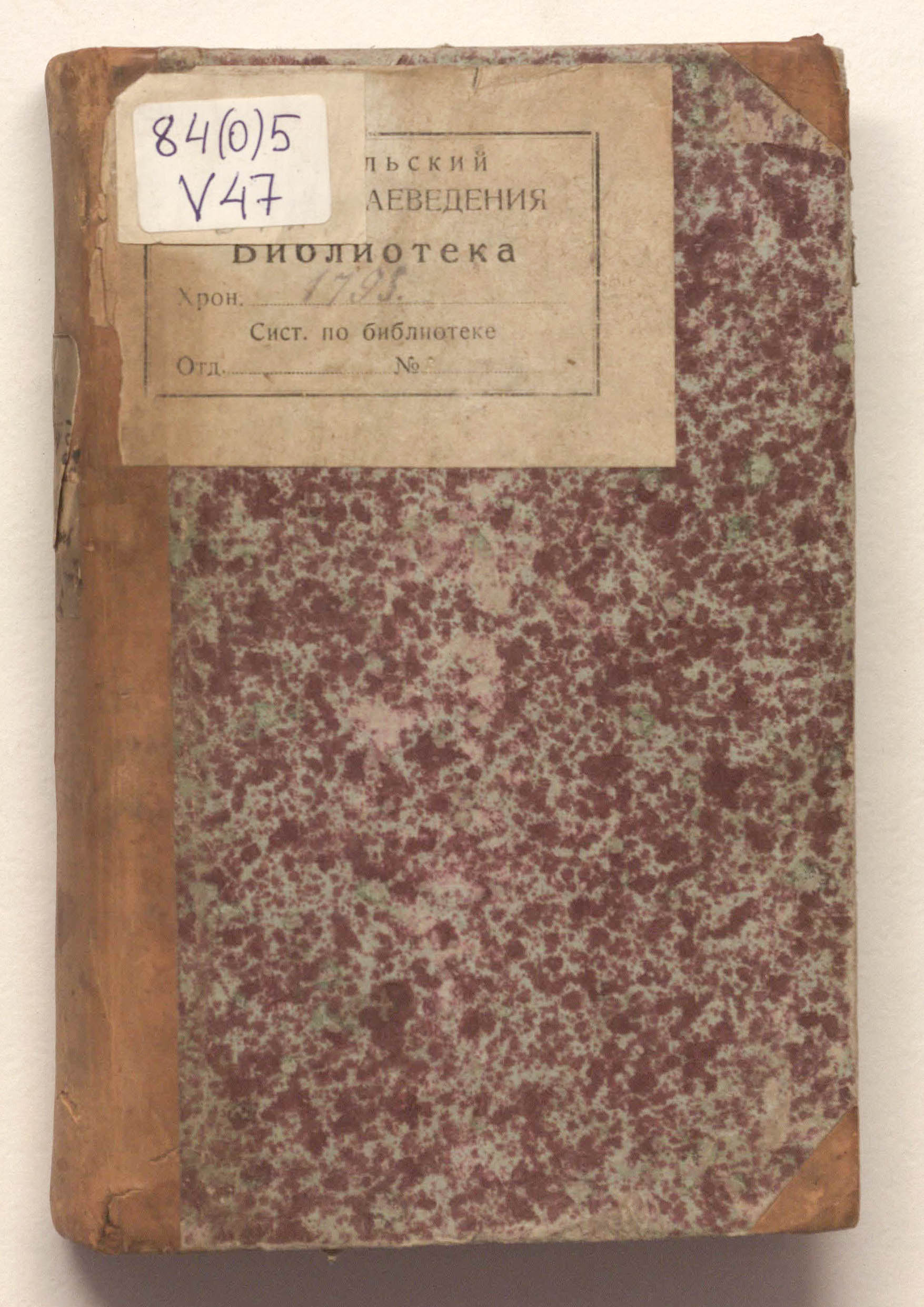 "Библиотека Нижне-Тагильских заводов. Шкаф C. Полка III. №28» (авантитул);