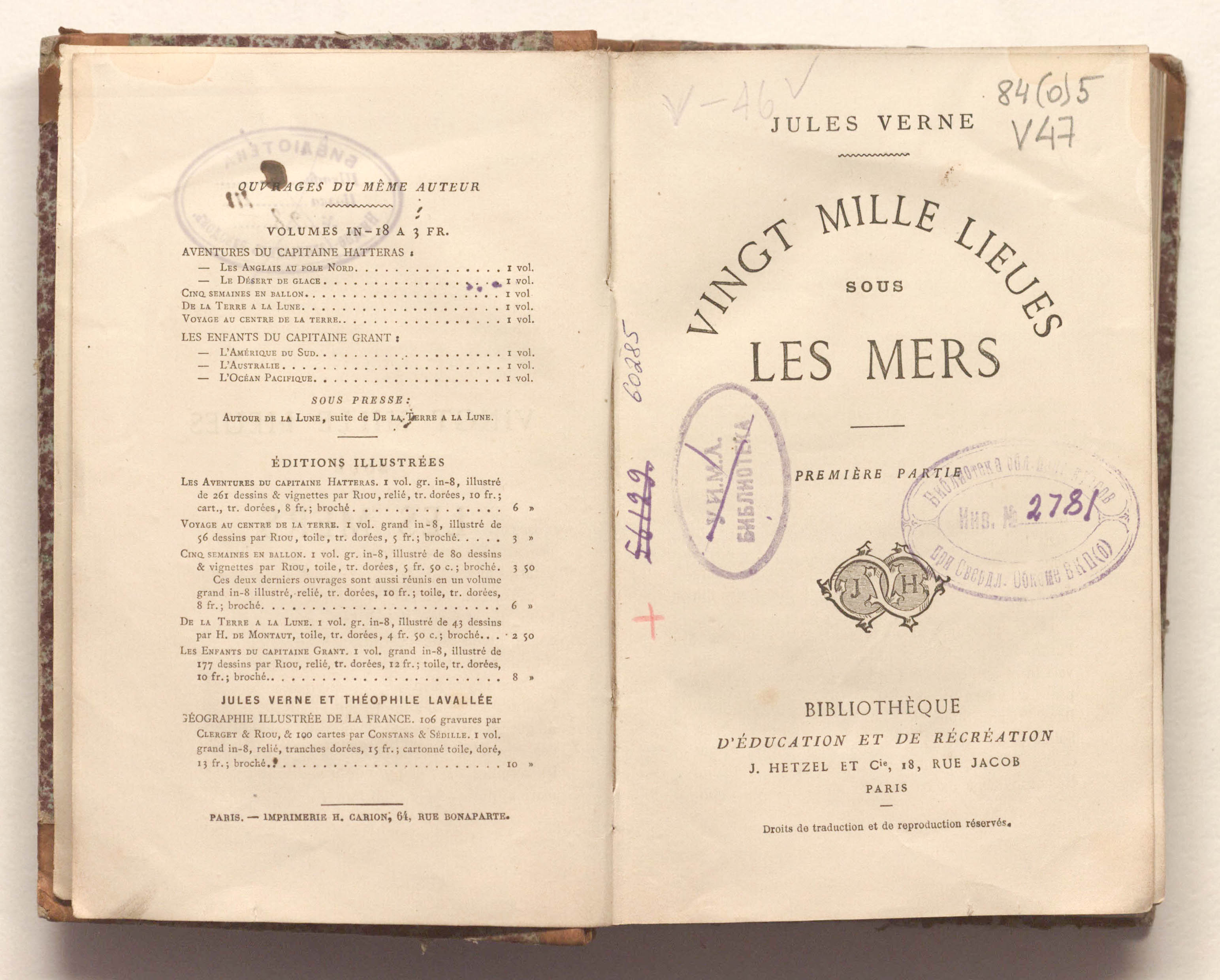 Vingt mille lieues sous les mers. – 2 t. - T. 1. – 2nd. ed. - Paris : J. Hetzel, [1870]. - 306, [12] p.; 12x18,5 cm.