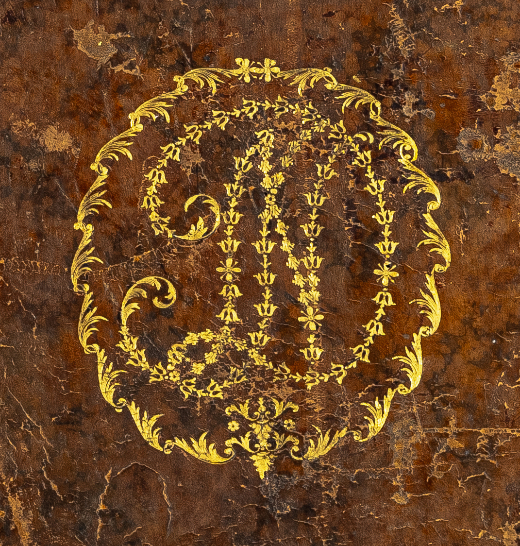 Суперэкслибрис вензелевый, тиснение золотом, 110х100 мм. В орнаментальной рамке инициалы владельца «ND». Никита Акинфиевич Демидов (1724-1789)