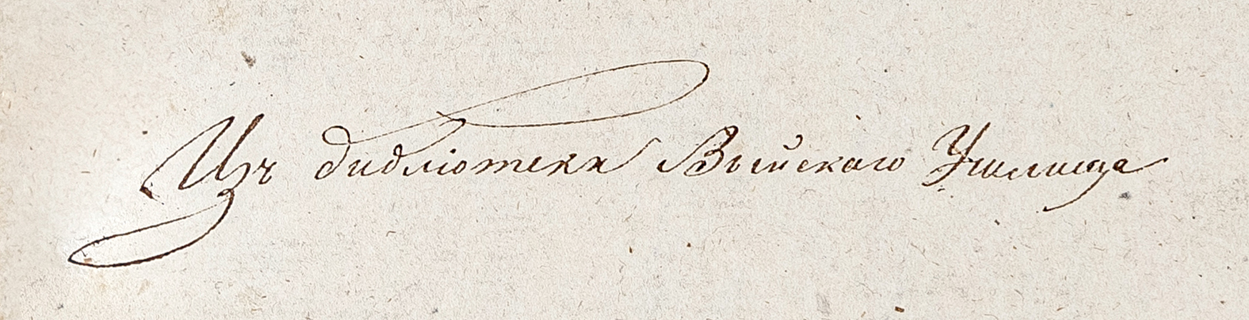 Рукописный экслибрис чернилами «Изъ библiотеки Выйскаго училища».